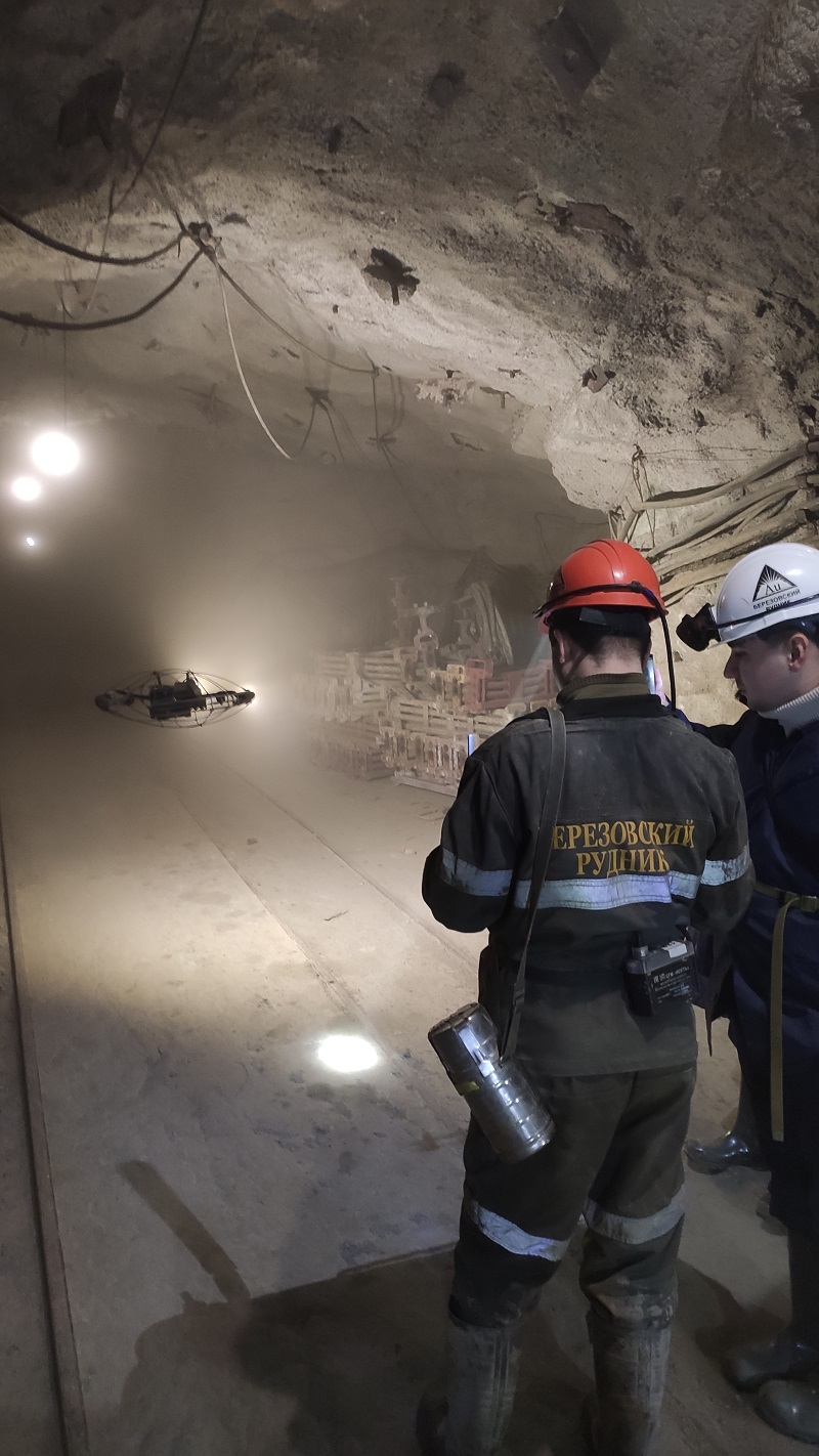 В декабре 2025 года научные сотрудники лаборатории подземной геотехнологии Института горного дела УрО РАН совместно со специалистами Центра Беспилотных Авиационных Систем Университета Иннополис и АО «ПРИН» провели выездные испытания промышленного БПЛА InnoSpector на руднике «Берёзовский». БПЛА InnoSpector, оснащённый лидаром, 4К камерой и мощной светодиодной подсветкой, был запущен в труднодоступные зоны, где нахождение человека запрещено правилами безопасности – очистное пространство камеры и рудоспуски. Сканирование окружающего пространства в месте полёта дрона транслировалось на управляющий пульт в виде облака точек, и в совокупности с 4К-камерой позволяло визуально определить состояние кровли и стенок выработки, наличие зависаний руды и заколов.
