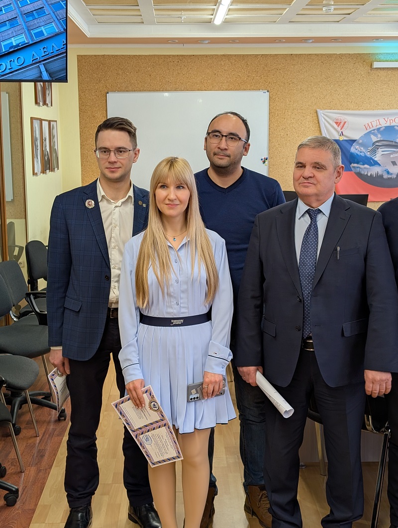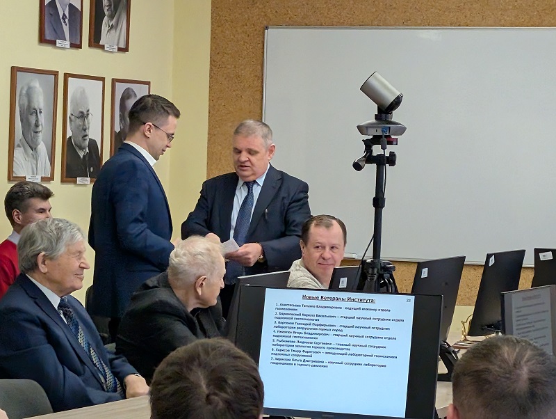 Традиционно директор вручил новым работникам Института нагрудный знак ИГД УРО РАН, а также удостоверения ветеранам, проработавшим в Институте 15 и более лет.